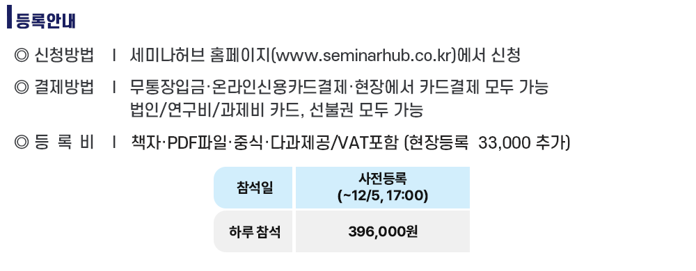 ※ 결제방법에서 '현장카드결제' 선택 후 세미나허브 사무국으로 전화주시기 바랍니다.(02-2088-6488)