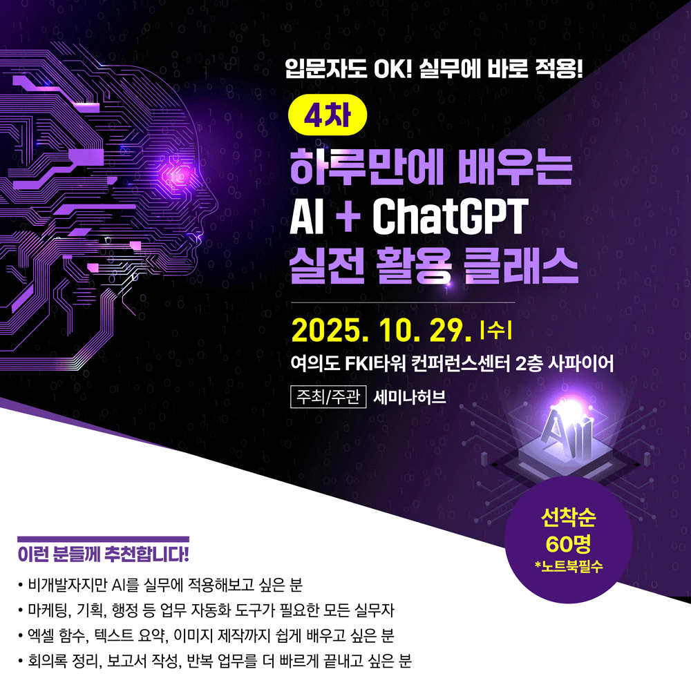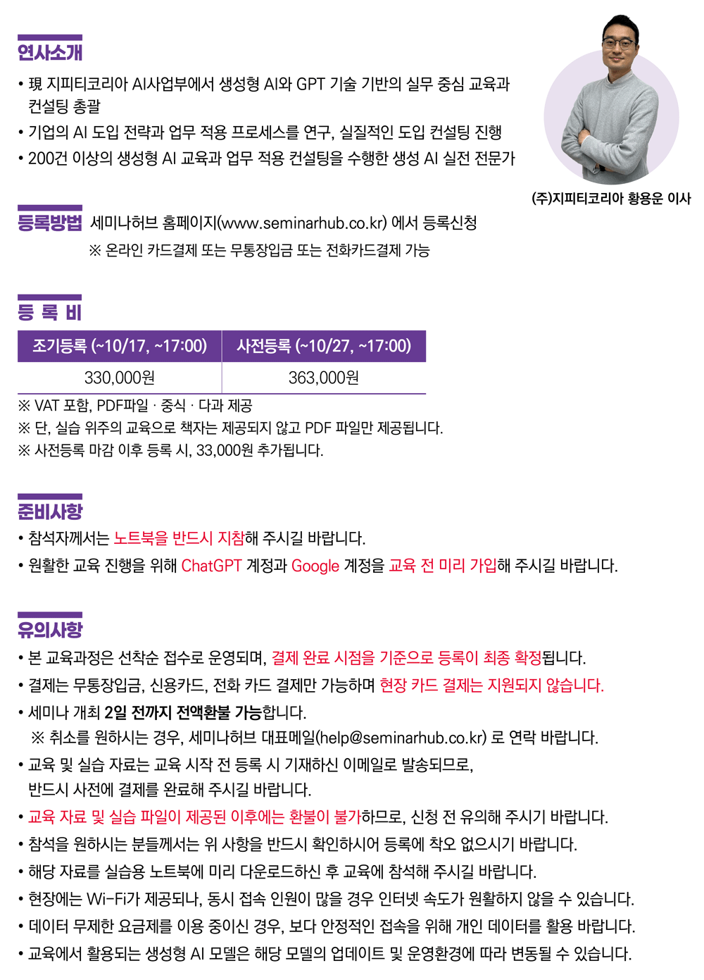 [잔여좌석-7석][10.29] 제4차 하루만에 배우는 AI+ChatGPT 실전 활용_입문부터 업무에 바로 활용