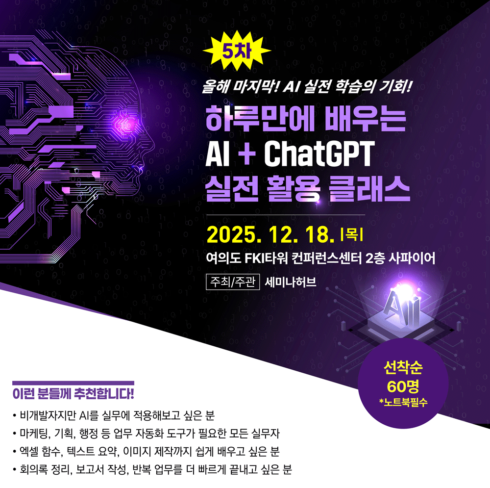 [12.18] 제5차 하루만에 배우는 AI+ChatGPT 실전 활용_입문부터 업무에 바로 활용