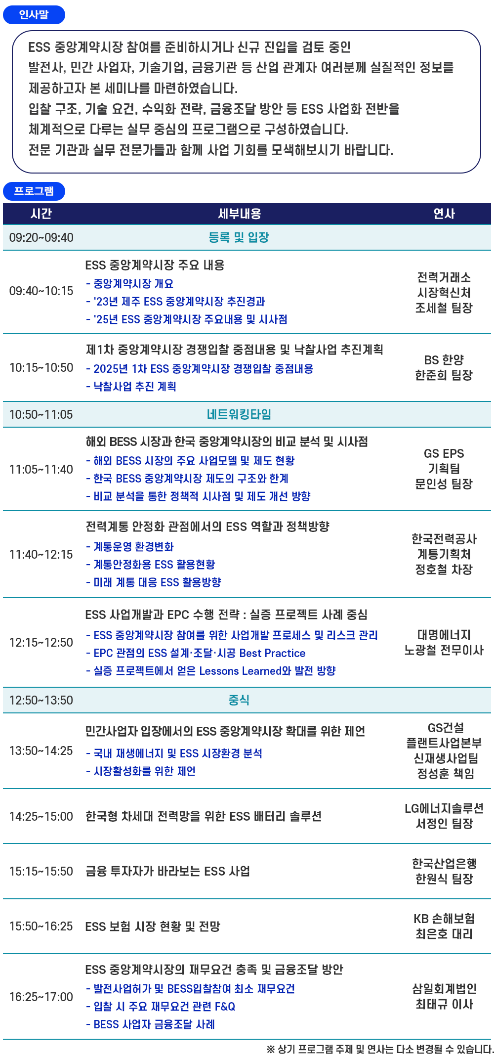 [11.4] [선착순] ESS 중앙계약시장 입찰전략과 금융·보험 연계 사업화 세미나